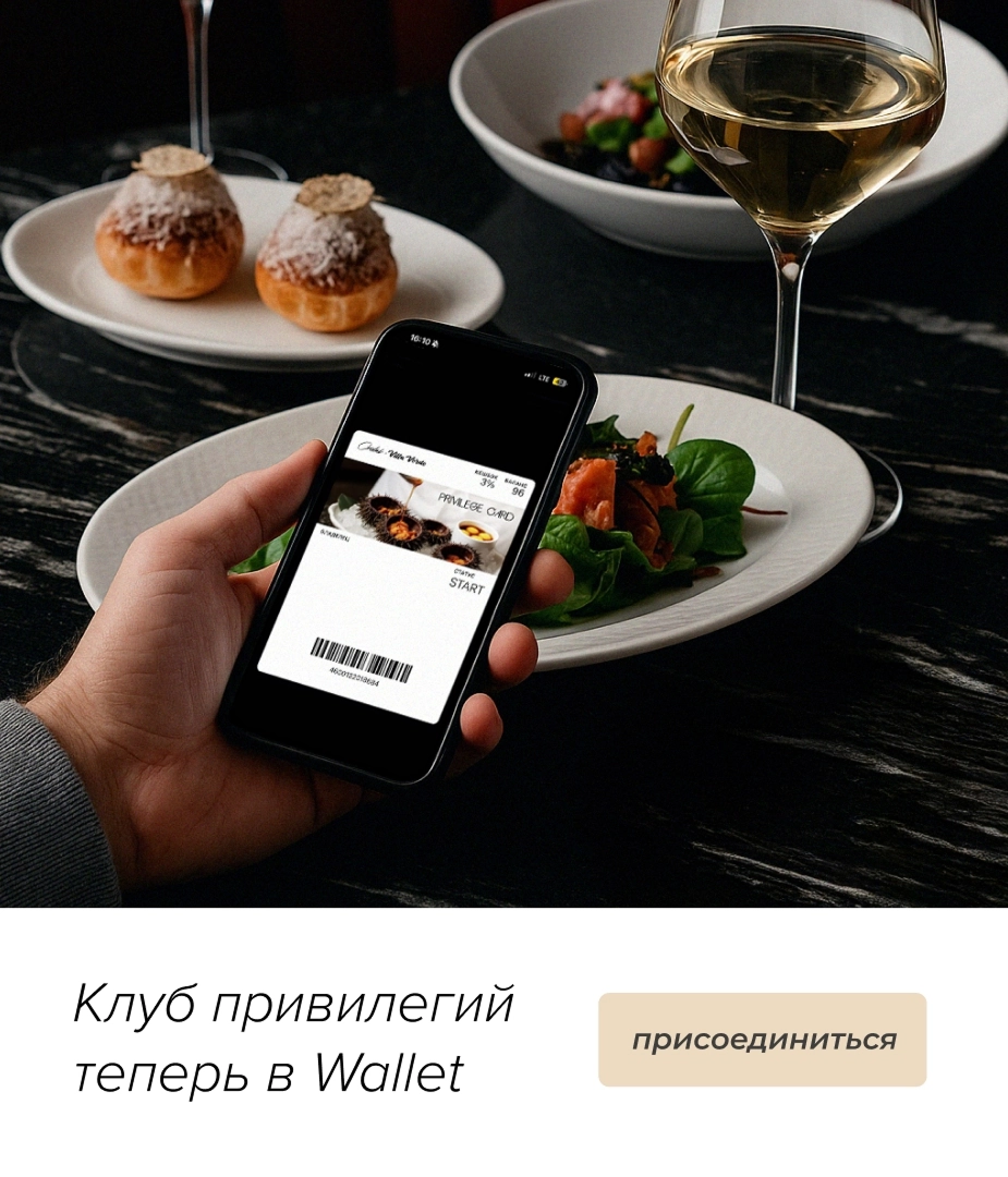Программа лояльности CRISTAL и VILLA VERDE переходит в Wallet, электронный кошелёк в Вашем смартфоне. Пользуйтесь общим бонусным счётом в двух ресторанах: предъявляя клубную карту при каждом посещении, Вы сможете копить бонусы и оплачивать ими до 90% от суммы счёта.